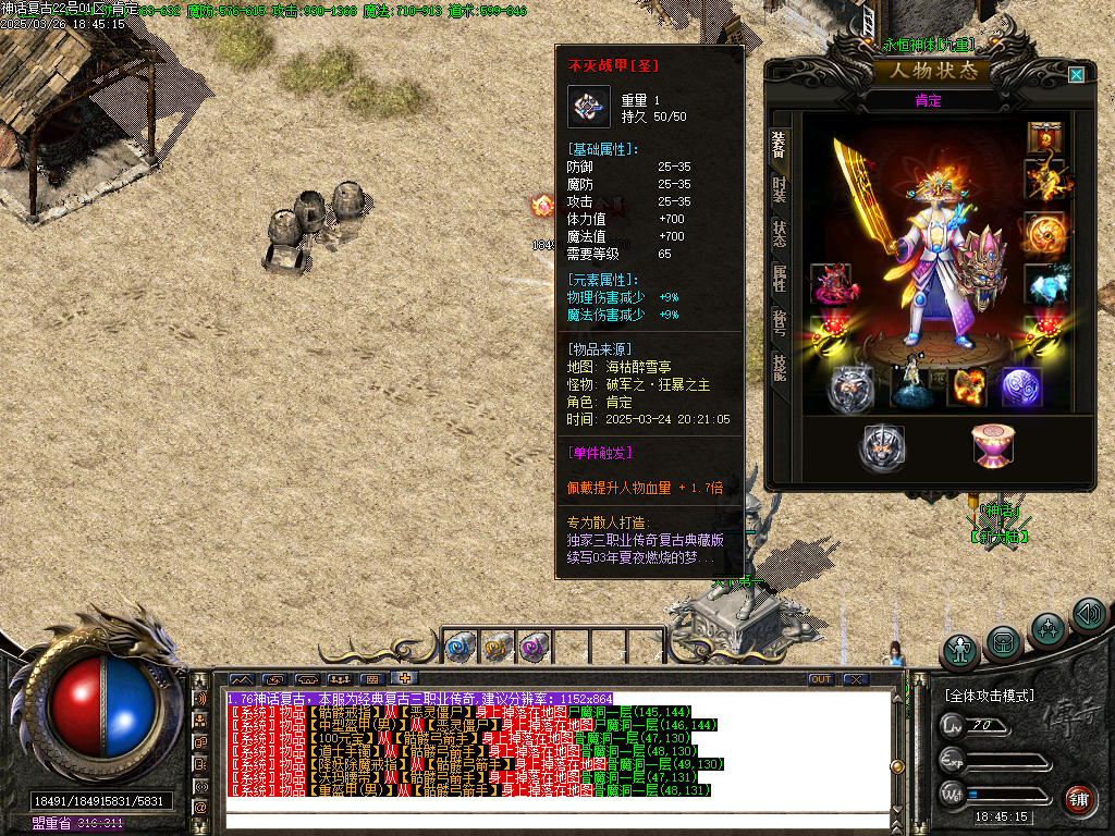 【特别说明】:本服装备祖玛装备→赤月装备→黄金赤月→白虎→梦幻装备→辉煌装备→毁天装备,怪物全可爆出!